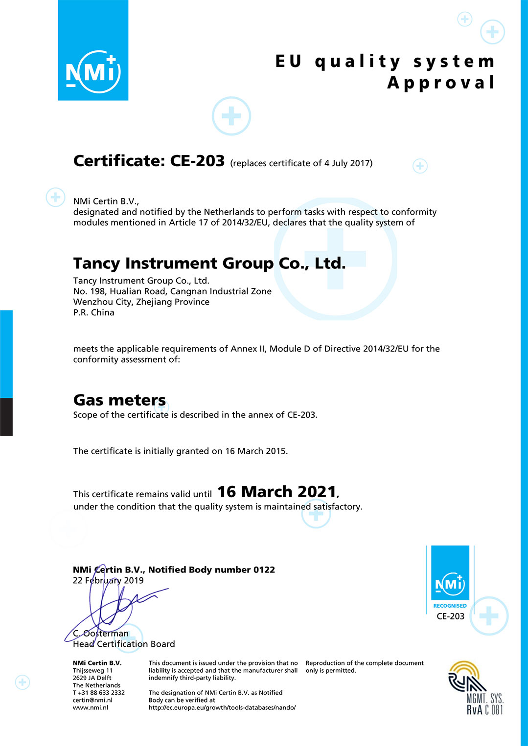 • MID module D Certificate