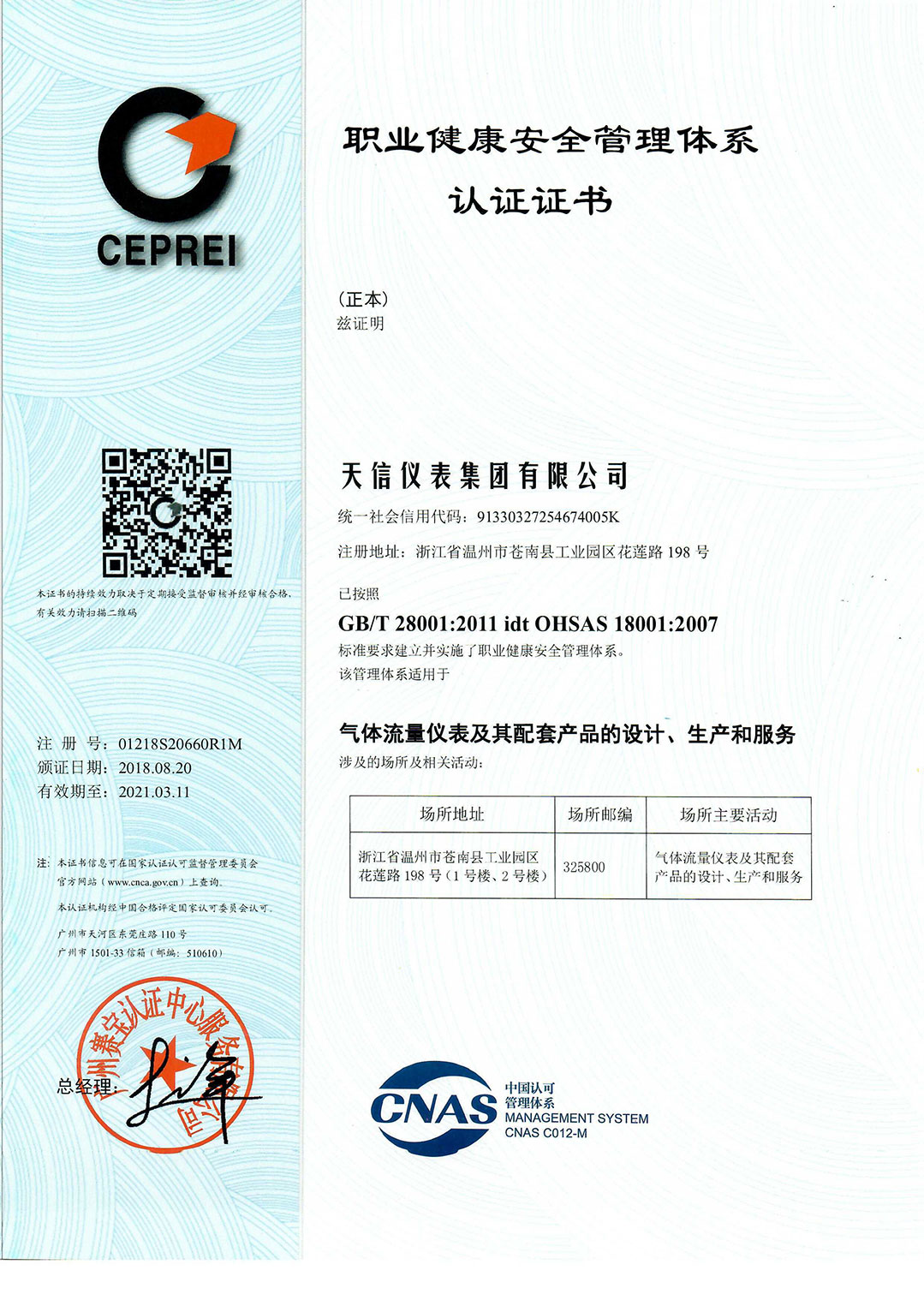 • Occupational Health and Safety Management System Certificate