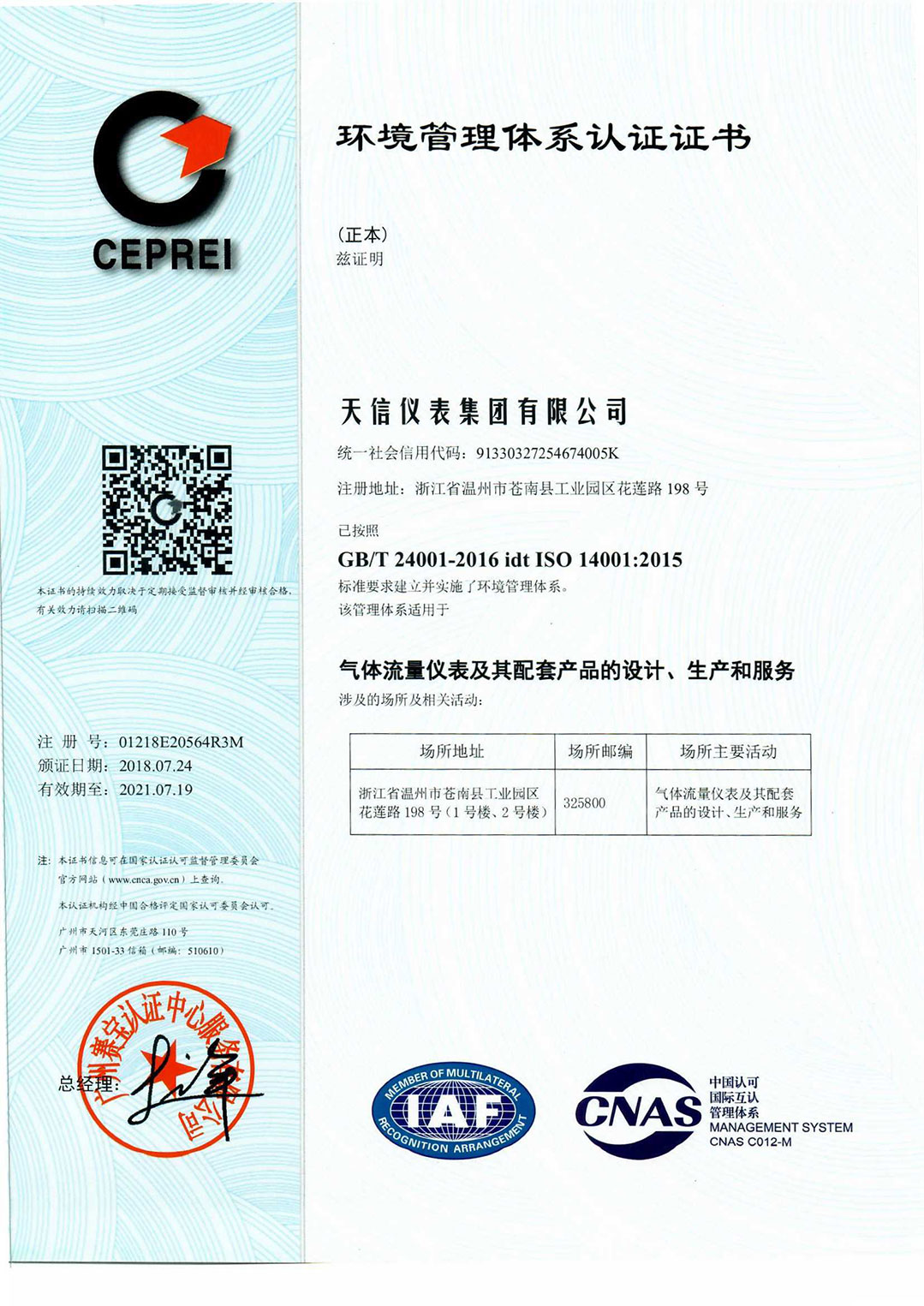 • Environment Management System Certificate