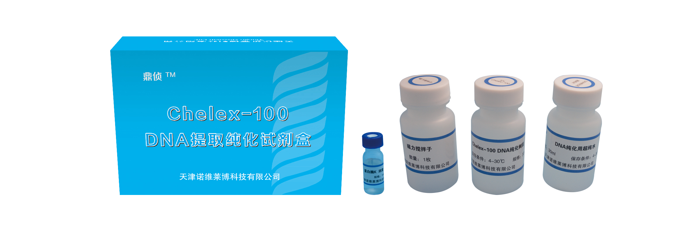 Chelex-100法是一種簡單、快速、靈敏度高的DNA提取方法,適用于多數現場檢材的DNA提取。我公司經過反復試驗研究開發出了高效Chelex-100純化DNA提取試劑盒,該試劑盒較普通Chelex-100法相比可獲得更高效的PCR效率,具有更高的現場檢材的檢出率。并且操作簡單方便,最大程度提高用戶效率,可以廣泛應用于各種現場檢材的DNA提取,如血跡、唾液斑、精斑、脫落細胞、軟組織、軟骨、指甲、毛發等的DNA提取。