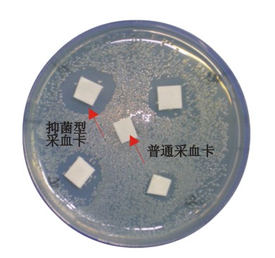 看到明顯的抑菌環 鼎偵血樣采集卡上的一個樣本